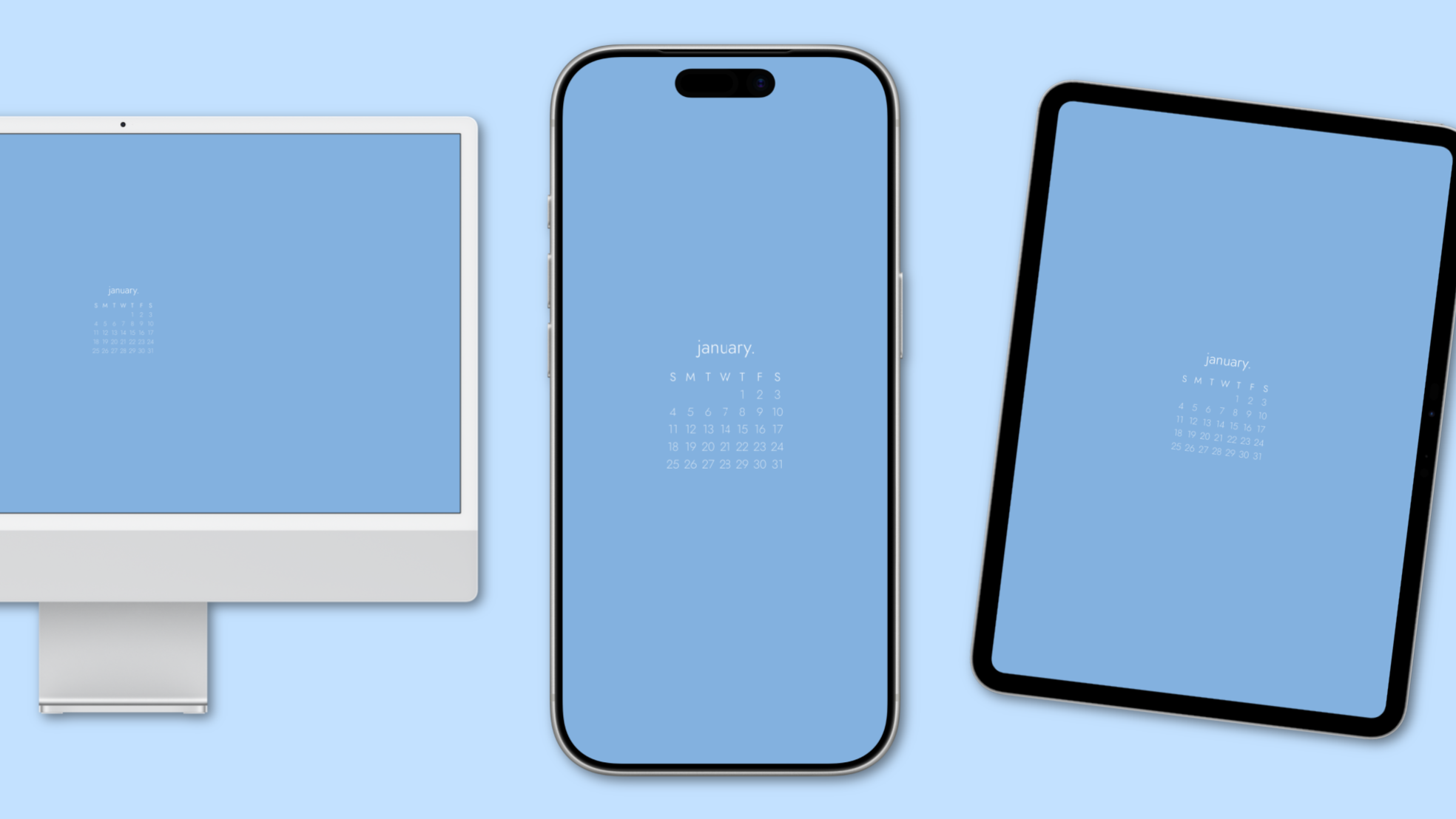 start the new year with free january calendars in the refreshing color: sky. 🩵☁️